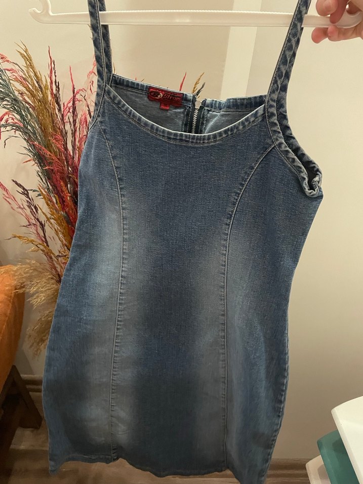 Askılı, straplez yaka ve fermuarlı sırt detayıyla,taşlanmış detaylı ve mavi tonlarda batik desenli, fitted kesim denim midi elbise çok güzel içine gömlek giyip de kombin yapabileceğiniz bir parça umarım yeni sahibi çok güzel kombinler yaparak mutlu şekilde giyer.