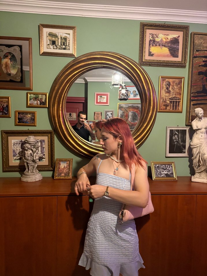 Bağcıklı detaylara sahip, askılı ve straplez midi elbise. Pembe tonlarında, bağlama deseni ile parti için uygun bohem ve retro tarzda. Önü arkası aynı