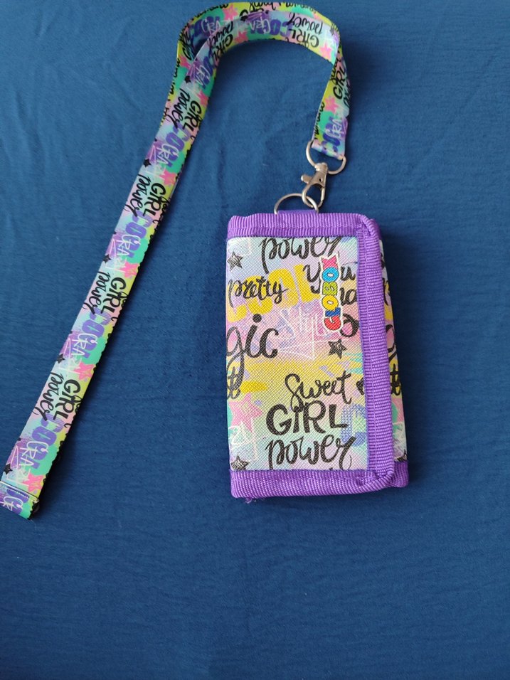 Renkli baskılı tasarıma sahip, çıkarılabilir askılı öğrenci cüzdanı boyna yada okul çantasına takılabilir