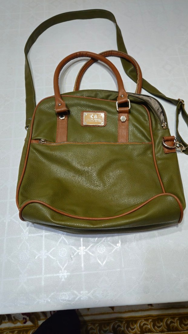 Günlük kullanım için fermuarlı, haki renk deri kadın çantası, sade ve desen içermeyen modern tasarım. ✨