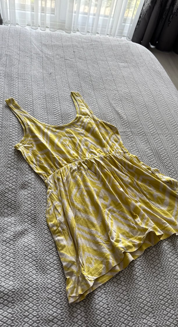 Askılı ,rahat bir kumaşı var geniş kalıp renk sarı