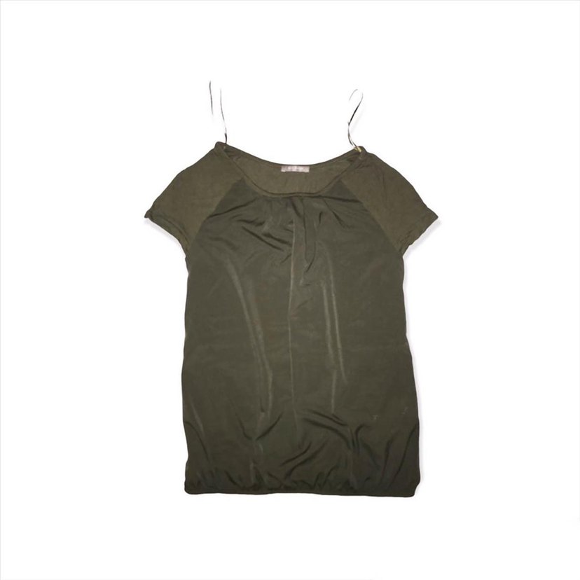Nefes alabilen keten kumaştan, askılı ve salaş kesimli haki hamile bluzu. Günlük kullanım için minimalist ve sokak stiline uygun.