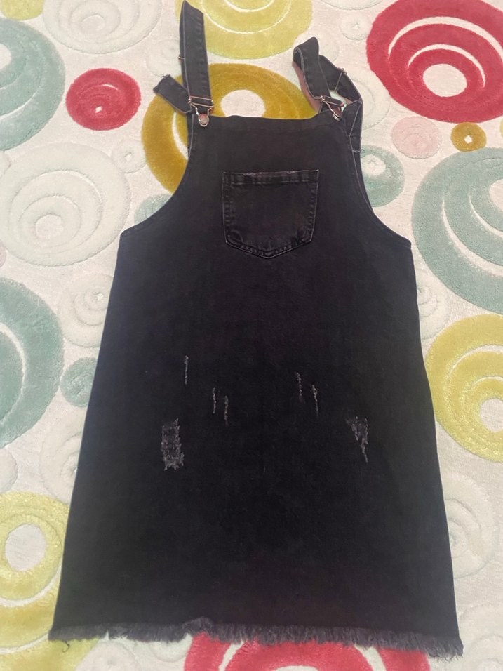 Askılı Siyah Midi Salopet Elbise