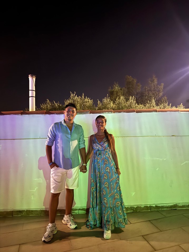 Askısız, turkuaz renkli, midi boyda, bol kesim ve drapeli, hafif batik desenli bohem tarzda elbise. Nişan ve düğünler için uygun.
