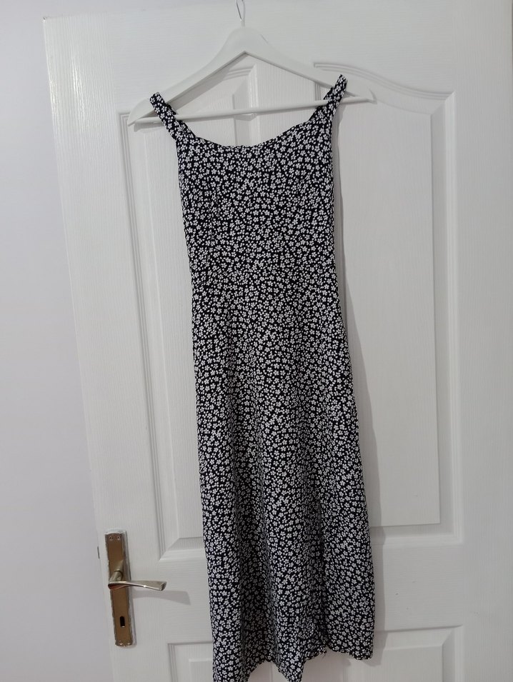 Askılı Uzun Bağlamalı Desenli Elbise - Görsel 1