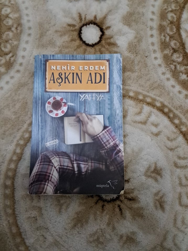 Nehir Erdem'in "Aşkın Adı" adlı romanı, bir deftere yazı yazan el ve yanındaki çay fincanını gösteren kapağıyla samimi bir atmosfer sunuyor.