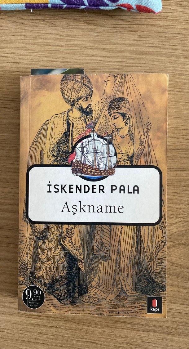 İskender Pala'nın Aşkname adlı eseri, aşk ve tarih temalarını zengin anlatımla sunuyor. Kapakta tarihi figürler ve gemi motifi bulunuyor.