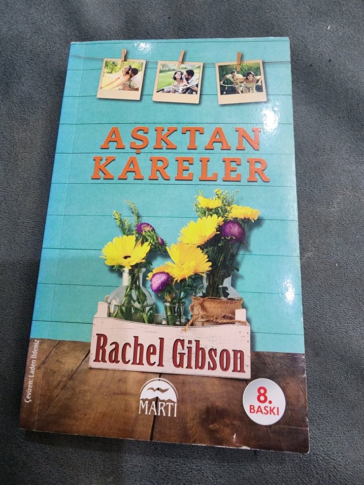 Rachel Gibson Aşktan Kareler romanı, Marti yayınevi tarafından 8. baskı olarak yayımlanmıştır. Kapağında çiçekler ve fotoğraf çerçeveleri bulunur.