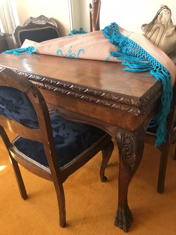 Parlak mavi işlemeli desenlere ve bohem tarzda püsküllere sahip masa örtüsü, masanıza dekoratif bir dokunuş katıyor.