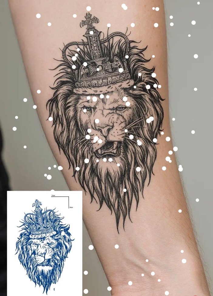 Aslan Figürlü 12 Saat Sonra Kararan Geçici Orta Dövme Tattoo