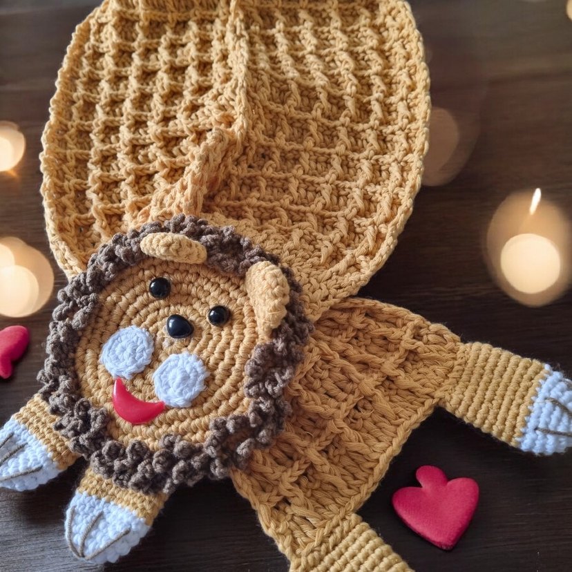 Aslan Figürlü El Örgüsü Çocuk Atkısı