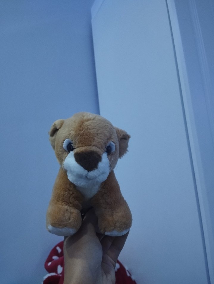 Yumuşak kumaştan yapılmış açık kahverengi peluş oyuncak, sevimli hayvan tasarımıyla sarılmak için uygun. Yırtık vs yok