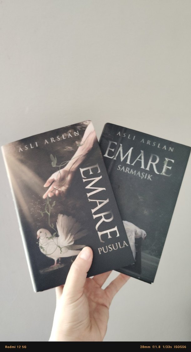 Aslı Arslan imzalı, sembolik görsellerle kaplanmış Emare Sarmaşık ve Emare Pusula adlı iki roman. Kitap ayraçları ve posterleri mevcuttur. Yazarından imzalı seri.