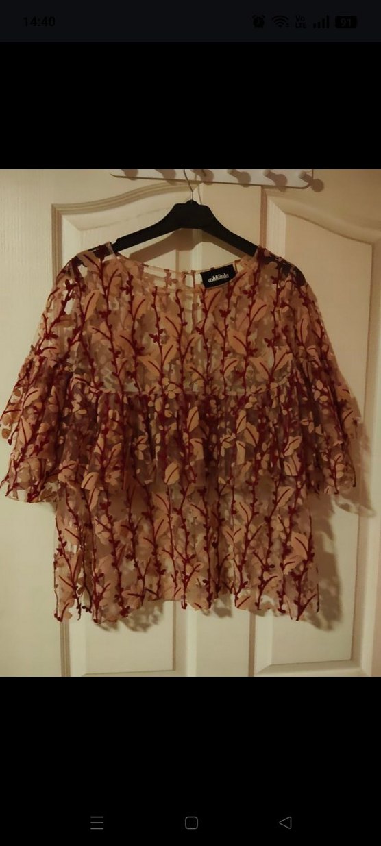 Bordo renkli kısa kollu bluz, nakışlı desenleri ve volan detaylarıyla bohem tarzda, salaş kesime ve yuvarlak yaka sahiptir.Aslifilinta marka özel mağaza ürünüdür.Hic kullanılmadı