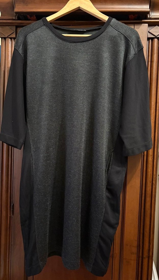 Siyah renkte, ön ve arka parçalar simli yanlar şerit halinde siyah, yuvarlak yaka rahat ve bol kesim olan elbise şık bir görünüme sahip. Beden 42-44 Boy 92 Göğüs 128 Basen 138