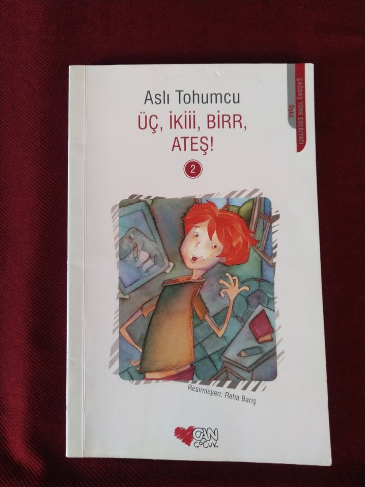 Aslı Tohumcu'nun 'Üç, İkili, Birr, Ateş!' adlı çocuk kitabı, renkli çizimlerle genç okuyuculara hitap ediyor. can çocuk. ön kapağın da nokta kadar deformeler mevcut. 2014 baskı. 73 sayfa.