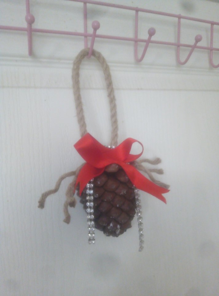 Doğal, gerçek kozalaktan yapılmıştır. Yılbaşı ağacına, bahçeye, duvara nereye isterseniz asabilirsiniz. Asma ipiyle boy 20 cmdir