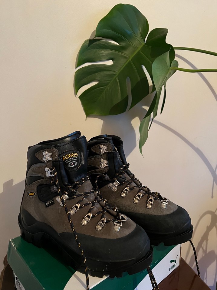 Siyah ve haki tonlarda, unisex outdoor kar botu. Dayanıklı kauçuk malzemeden yapılmış, cırt cırtlı ve sağlam bağcıklı tasarıma sahiptir. Soğuğa ve suya dayanıklı. Sadece bir kere kullanılmıştır. Asolo marka.