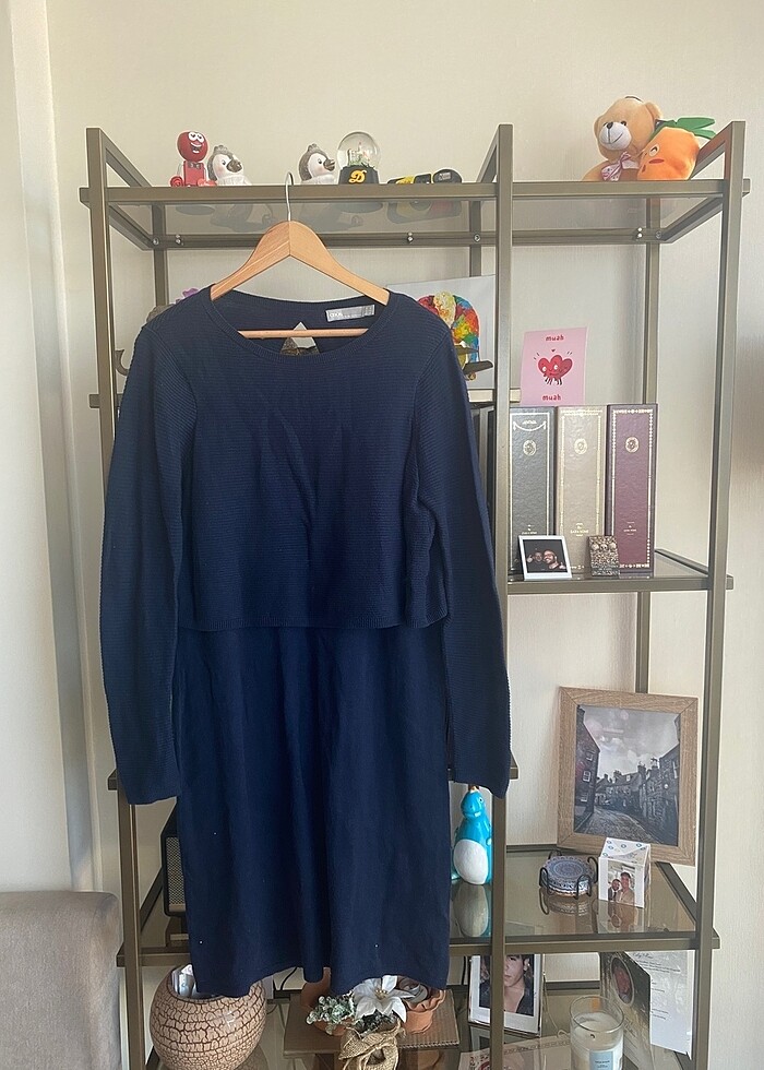 Asos marka lacivert 44 beden triko elbise. Üst kısımda detaylı kazak giyilmiş gibi ama tek parça. 38-40 beden arasında da bol olduğu için güzel duruyor.