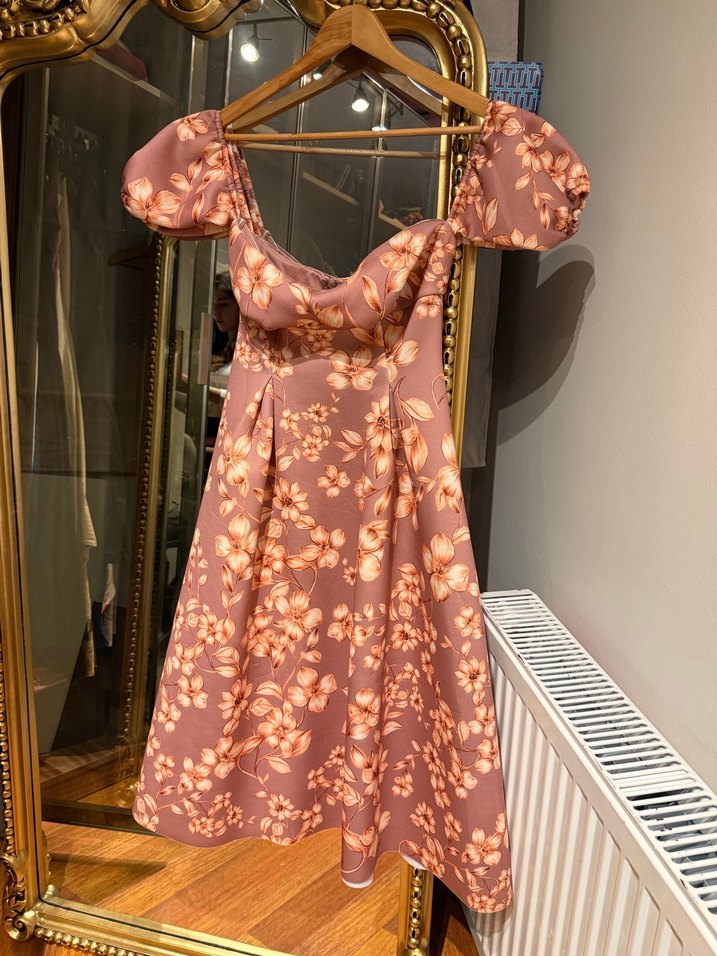 ASOS Pudra Çiçek Desenli Uzun Bohem Elbise