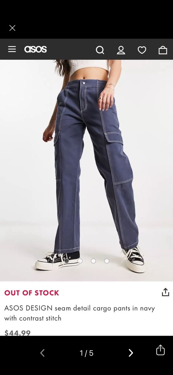 ASOS Tasarım Lacivert Dikiş Detaylı Kargo Pantolon
