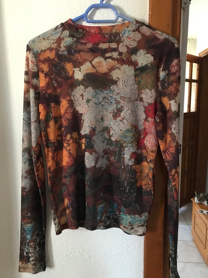 Pek iç göstermez, kumaşı rahat, s-m hatta belki L bedenlere de uyar. İsteyen ölçü ve esneme payı bilgisi verilir. Deseni çok tatlı.