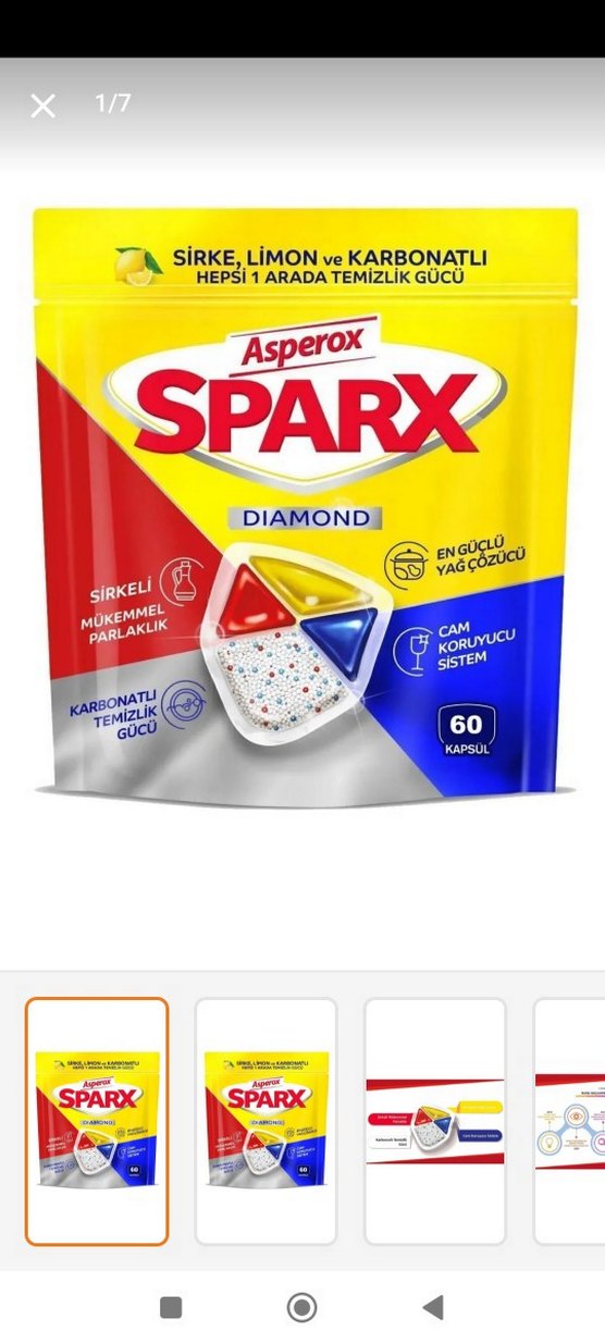 Asperox Sparx Diamond bulaşık kapsülleri limon, sirke ve karbonatlı formülüyle güçlü yağ çözücü, cam koruyucu ve mükemmel parlaklık sağlar. 60 kapsül içerir.