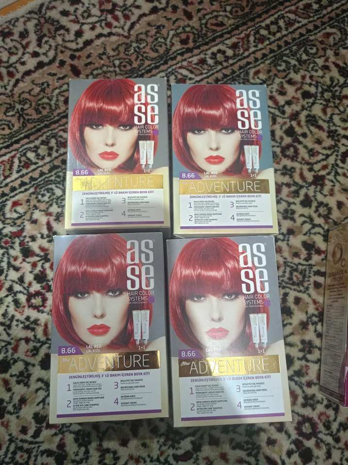 Asse Adventure 8.66 numara saç boyası, canlı kızıl renk sunar. Tam boyama seti ile uzun süre kalıcı renk ve kolay uygulama sağlar. yalnızca bir kutunun tarihi 5 Aralık 2025> diğerleri 2026 ve 2027 tarihi geçik olanlar ücret istemeyeceğim