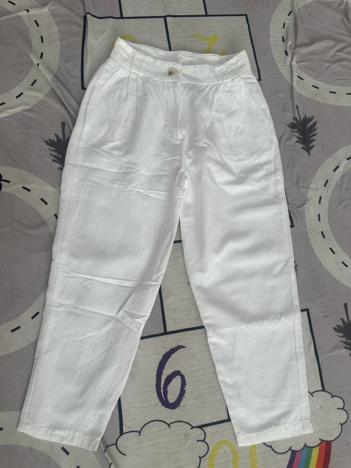 Astarlı beyaz keten pantolon