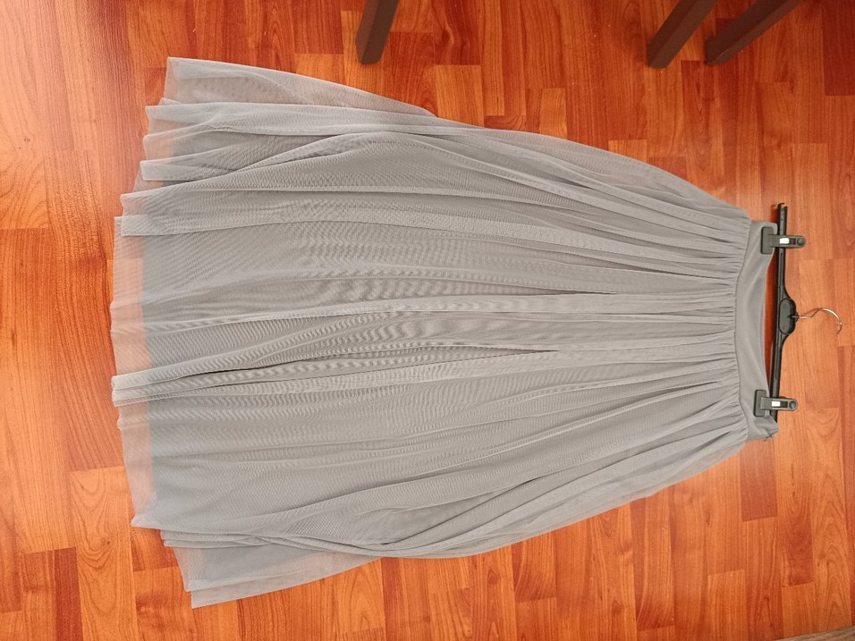 38 beden astarlı fermuarlı gri tül etek, etek boyu kemer yeri dahil yaklaşık 96 cm. dir.