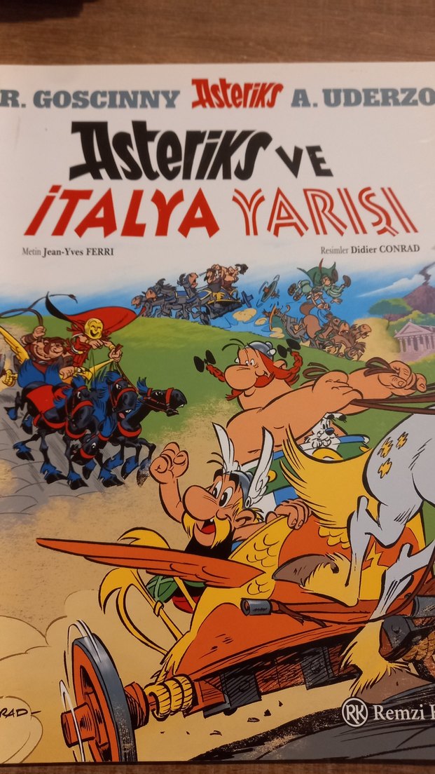 Asteriks ve İtalya Yarışı çizgi romanı, R. Goscinny ve A. Uderzo tarafından yaratılan karakterlerle Didier Conrad çizimleri ve Jean-Yves Ferri'nin hikayesiyle.