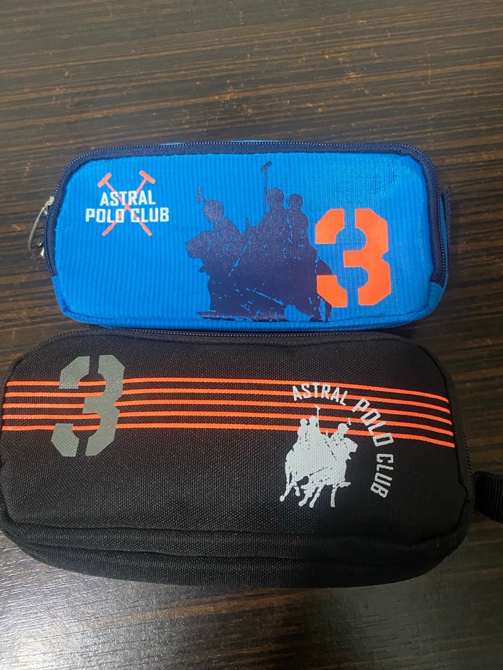 Astral Polo Club'un mavi ve siyah çocuk okul kalemlikleri, numara 3 ve kulüp logolarıyla canlı tasarımlar sunar. ✏️ adet fiyatıdır.