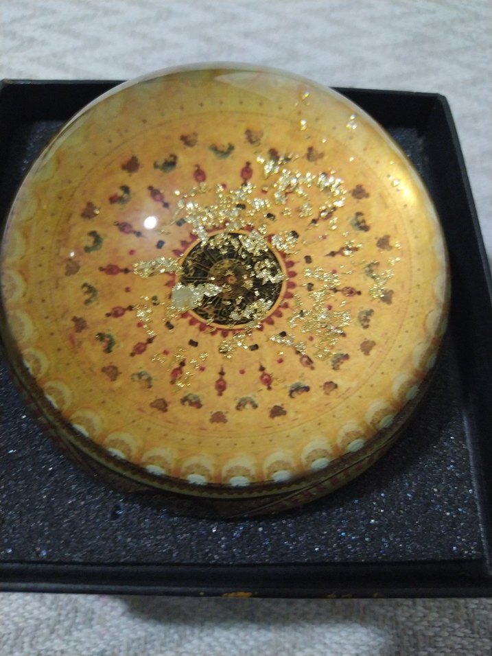 Altın detaylı astroloji temalı dekoratif kristal küre, astroloji ve fal meraklıları için uygun. Süleymaniye camii kubbesi kucultulmusu altın parçacıklı orjinal ürün (Süleymaniye camii restorasyonunda çalışan işçilere verilmiş ürün internette eBay sitesinde 120 dolar fiyatı