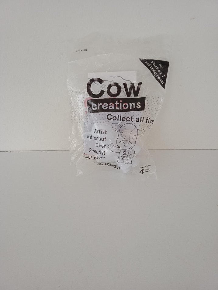 Astronot İnek Figür Tasarım Oyuncak Cow Creations . İçerisindeki stikır ve kağıtlarla İnek figürü astronota dönüştürülüyor. İnek boy 8 cm. ABD'den alınmıştır. Chick-fil-A promosyonudur. Burger King Mc Donalds Wendy's