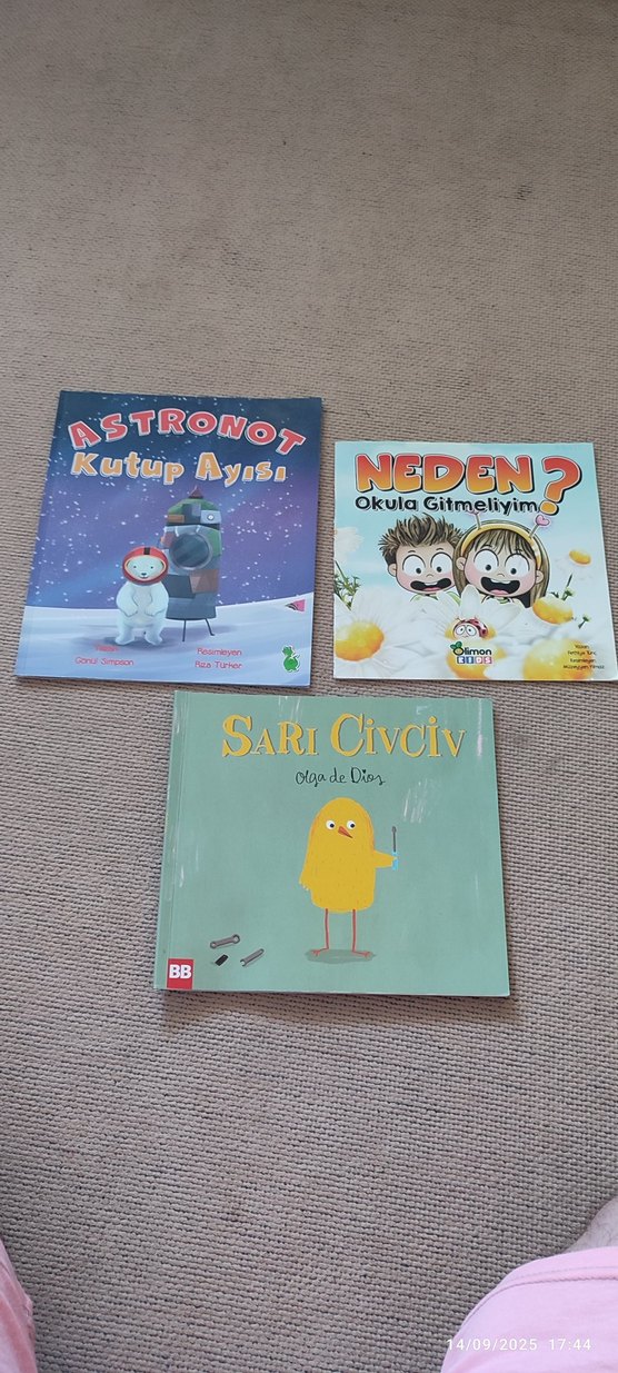 Astronot Kutup Ayısı, Neden Okula Gitmeliyim ve Sarı Civciv adlı üç çocuk kitabından oluşan set. Eğlenceli ve öğretici hikayeler içerir. ÜRÜNLER TEMİZDİR. KURŞUN KALEM İLE SARI CİVCİV KİTABINDA YAZILARIN ALTI ÇİZİLİDİR. OKUMAYA ENGEL DEĞİLDİR.