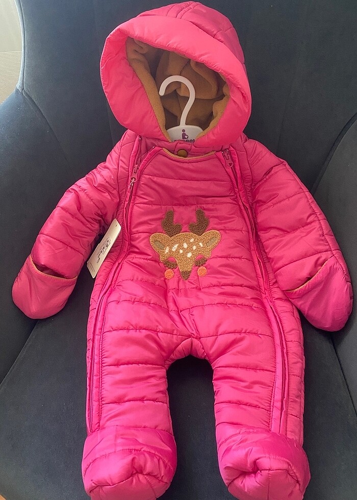 Kızıma hediye gelmişti çok önce geldiği için değiştiremedim şimdi ise olmuyor hiç giyilmedi e bebek ürünü etiketli 6 aylık bebeklere kadar uygundur bilindiği gibi kışın bu montlar çok pahalı oluyor ikinci el ürünlere nazaran fiyatını uygun tuttum