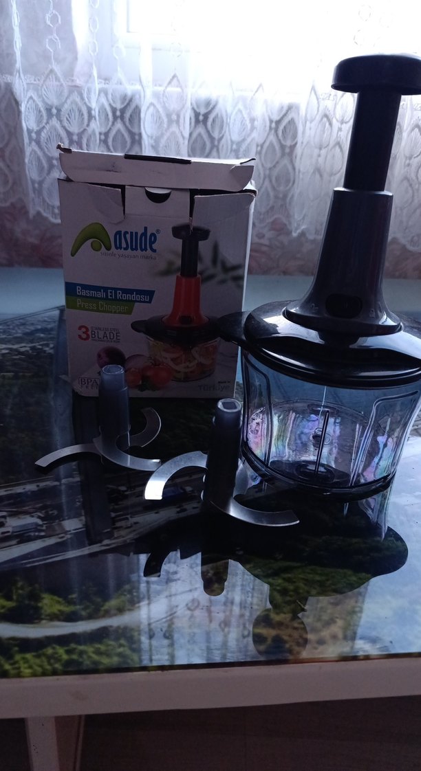Asude siyah el rondosu, hızlı doğrama için 3 keskin bıçağa sahiptir. Şeffaf haznesi ve kullanımı kolay sapıyla pratik yemek hazırlığı sağlar.