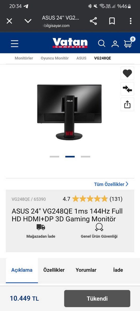 ASUS 24" VG248QE 1ms 144Hz Full HD Gaming Monitör