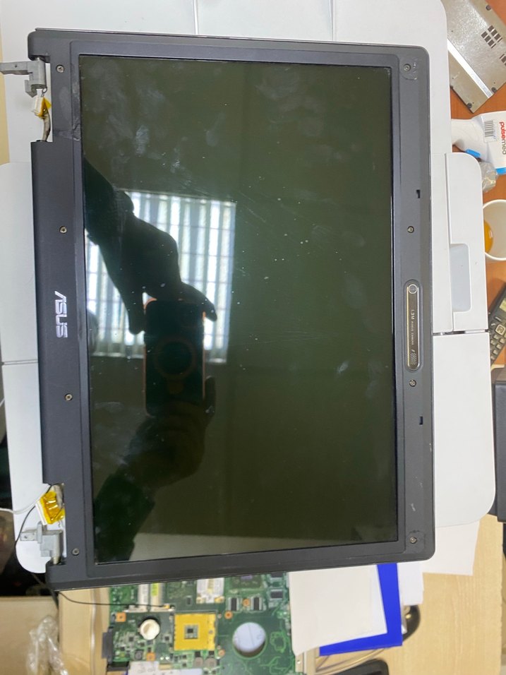 ASUS marka gri laptop ekranı, kullanılmış ve iç bileşenler yanında görünür. ️sağlam ekran
