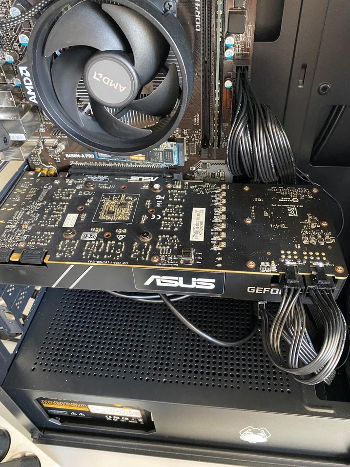ASUS GeForce siyah ekran kartı, soğutucu fan ve çoklu güç kablolarıyla donatılmıştır. ️ Gtx 1080 TDI Ekran kartı sıcaklık derecesi 83 derece