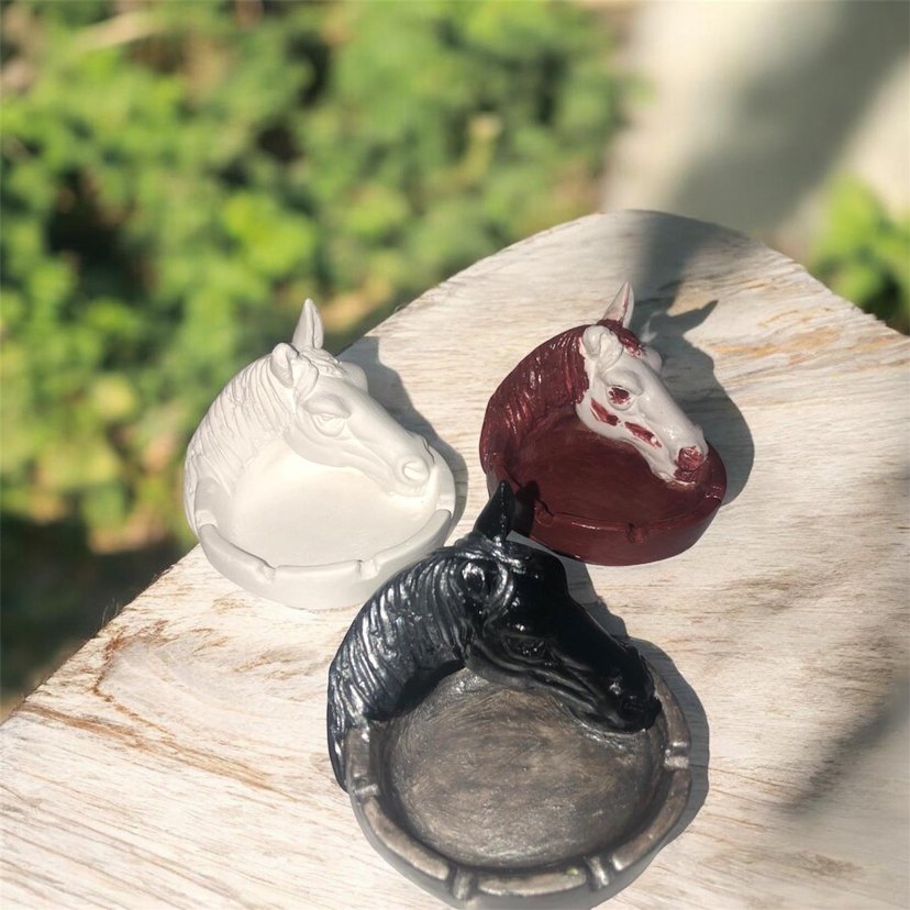 Taş tozu ile üretilmiştir settir kupa Mug porselendir istenilen renk yapılır su bazlı verniklidir Beyaz, koyu kırmızı ve siyah renklerde üç at başı figürlü küllük seti. Detaylı işçilikle tasarlanmıştır.