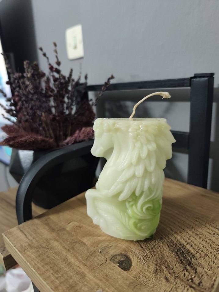At figürlü beyaz mum, detaylı kokusuyla görüntüsüyle yumuşak ve huzurlu bir görünüm sunar. ️
