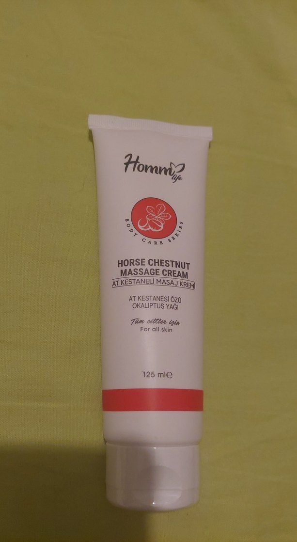 At kestanesi ve okaliptus yağı içeren, tüm cilt tipleri için uygun 125 ml masaj kremi.