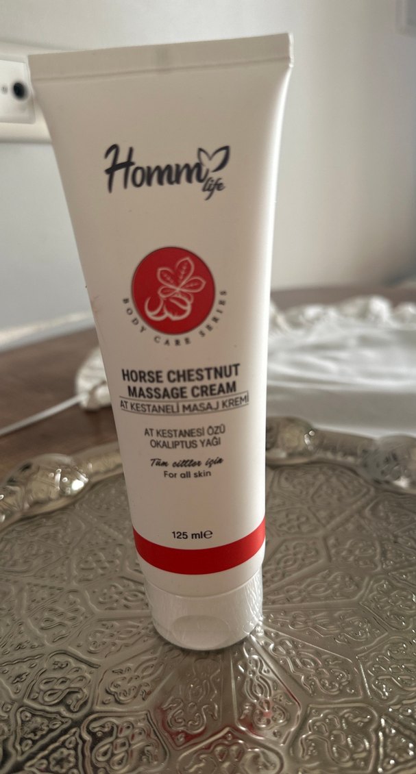 Homm Life at kestanesi özlü masaj kremi, okaliptus yağı içerir ve tüm cilt tipleri için uygundur. 125 ml hacmindedir.