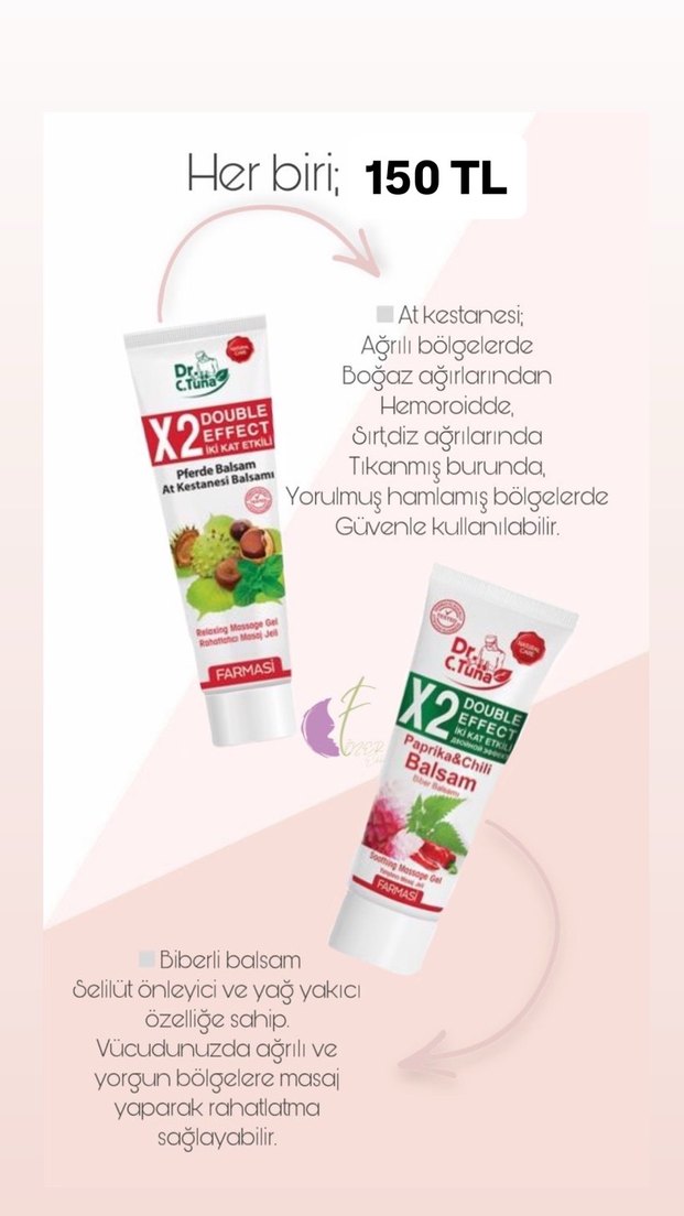 At kestanesi balsamı ağrılı bölgeler, boğaz ağrısı, hemoroid ve tıkanmış burun için; biberli balsam ise selülit önleyici ve yağ yakıcı özellik taşır. Her biri 150 TL.