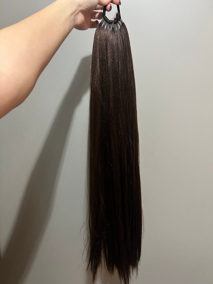 At kuyruğu peruk saç sıfır kuaförde yaptırıldı ısıya dayanıklı bazen karışabiliyor saç köpüğü ile çok rahat taranıp açılıyor yıkanabilir şekilde saçınız at kuyruğu toplayıp öne eğin öyle takın saçı karışma olmayacaktır kalan kendi at kuyruğu saçınızı da etrafına mutlaka dolayın temiz görüntü olması için uzunluğu 60cm dilerseniz makina ile kesip kısaltabilirsiniz örgü vesaire de yapılıyor saçta