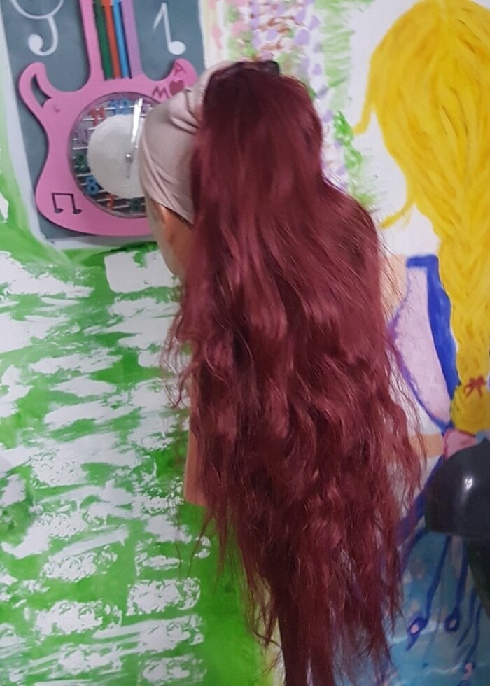uzun şarap renk fiber sentetik kuaför ürünü hijyenik şartlarda restorasyonu edilmiş düşük ısıda(fön, maşa) uygulanabilir sıfırdan farksız