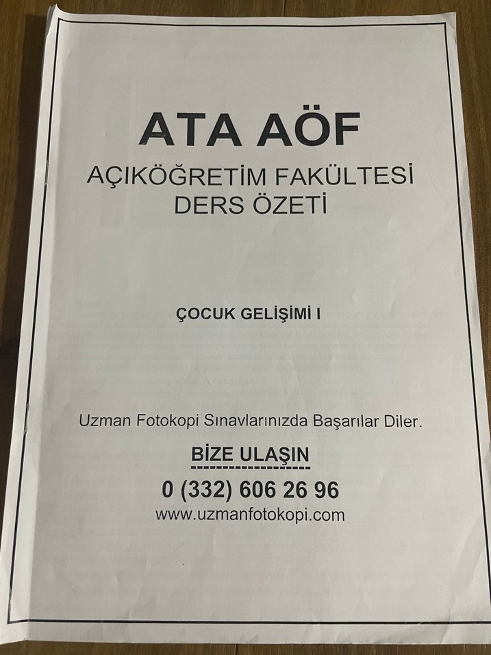 ATA Açıköğretim Fakültesi Çocuk Gelişimi I dersi özeti, Uzman Fotokopi tarafından hazırlanmıştır. İletişim bilgileri mevcuttur.