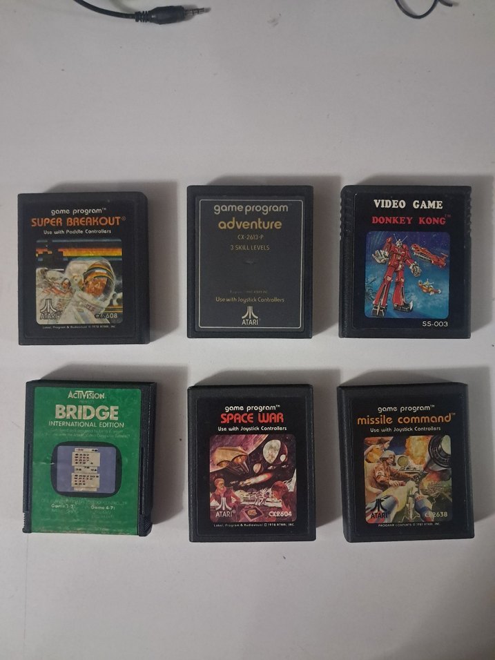 Super Breakout, Adventure, Donkey Kong, Bridge, Space War ve Missile Command oyunlarını içeren Atari oyun kartuşları seti. İstediğiniz ürüne ilan açarım fiyat temsilidir. Bu ilanı satın almayınız