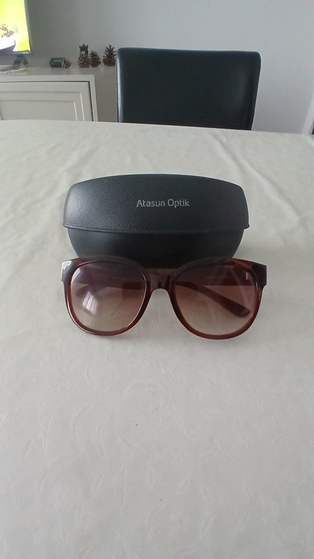 Atasun Optik markalı kahverengi kadın güneş gözlüğü, minimalist ve bohem tarzıyla klasik şıklığı yansıtıyor. Koruyucu kutu ile birlikte. ️